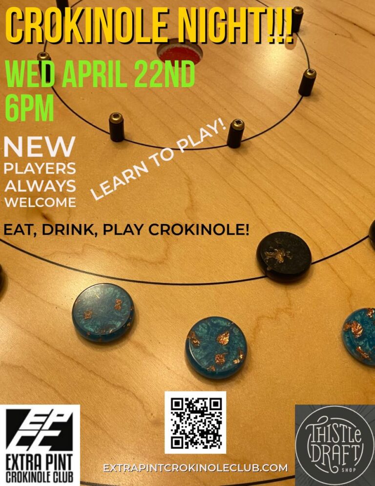 Stop by the taproom on 4/24 for a meet and greet of the world’s best crokinole players, open play and yes—this beer. Come back 4/25 in the evening for the finals in the Clear Mountain Room. Unfortunately this is the first year I’ll be missing the open, so have a beer for me.” ~ EPCC member and ILF C&B Brewmaster Scott Veltman